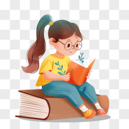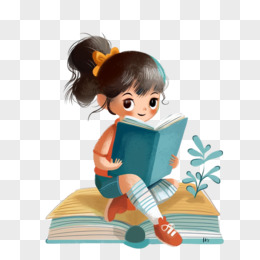 水彩手绘风格创意坐在书上看书的小学生免抠元素