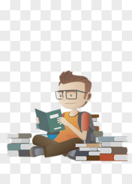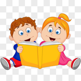 手绘卡通男孩女孩沉浸在书的海洋创意元素