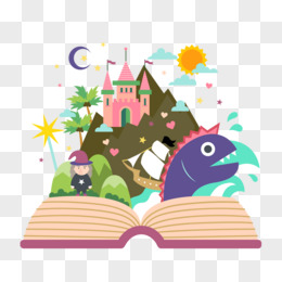 卡通元素打开书的奇幻世界