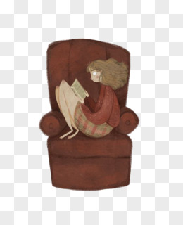 卡通手绘坐着看书的女孩免抠元素