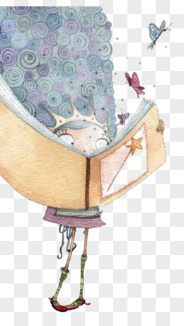 卡通手绘女生遨游在书本的世界里免抠元素