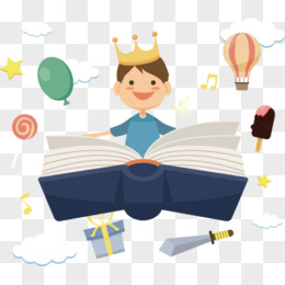 卡通手绘孩子遨游在书本的宇宙免抠元素