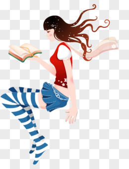 卡通手绘女孩翻开知识的大门免抠创意插画素材