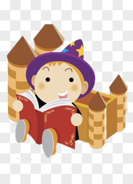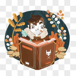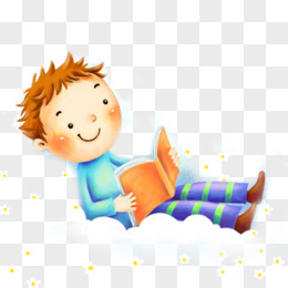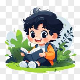 卡通风格春天草坪上看书的可爱男孩免抠元素