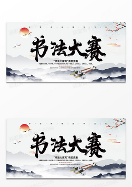 中国风黑白水墨书法大赛谁与争锋书法海报书法比赛展板