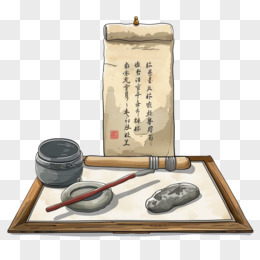 手绘笔墨纸砚四宝笔墨纸砚素材