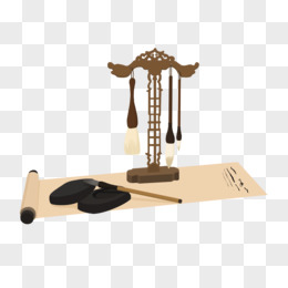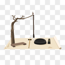 手绘文房四宝毛笔书法免抠素材