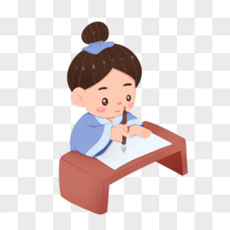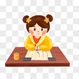手绘卡通女孩练习书法免抠素材