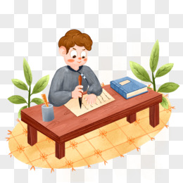 卡通手绘古代书童写书法免抠元素