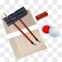 手绘卡通古代文房四宝笔墨纸砚免抠素材