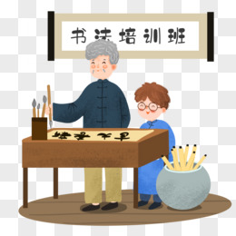 手绘卡通书法培训班插画免抠元素