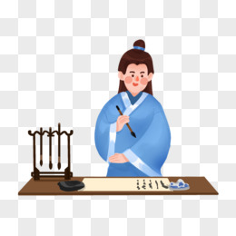 手绘卡通古人写毛笔字免抠元素