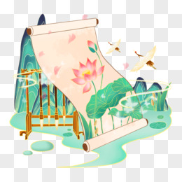 一组手绘国潮风琴棋书画山水组合合集之画卷元素