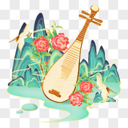 一组手绘国潮风琴棋书画山水组合合集之弹琴元素