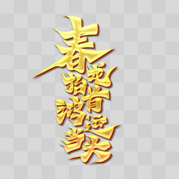 手绘金色书法字春龙抬首鸿运当头艺术字