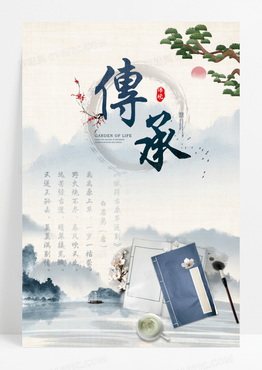 古风传承图书馆文学文化海报
