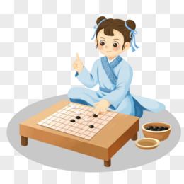手绘插画风古代书生下棋场景免抠素材