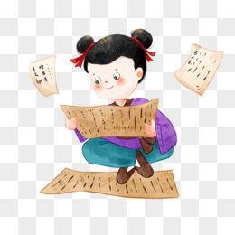 卡通手绘古代学童手拿书本素材