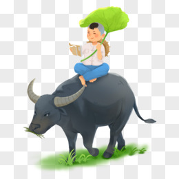 水墨风牧童在牛背上看书免抠素材