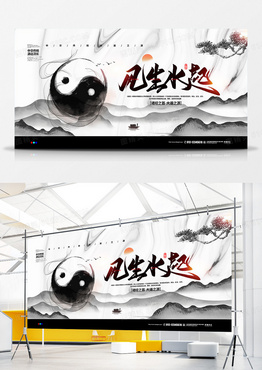 水墨中国风风生水起易经宣传展板设计