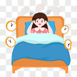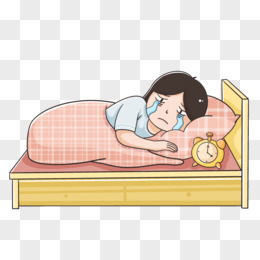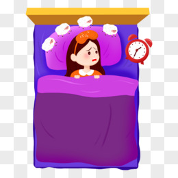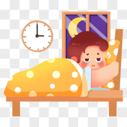 卡通手绘晚上睡觉失眠的女孩免抠元素