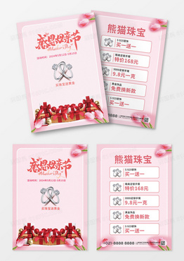 粉色礼盒水彩边框感恩母亲节珠宝黄金促销活动宣传单模板