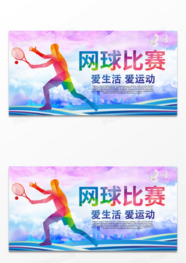 大气水彩创意网球比赛运动健身水彩网球比赛展板