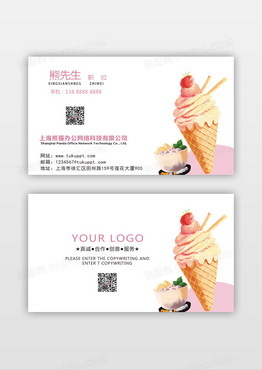 手绘水彩冰激凌草莓小料冰沙元素冷饮店名片