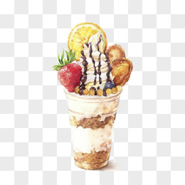 卡通水彩插画风格夏季饮品冰淇淋冰棍草莓绵绵冰免抠元素