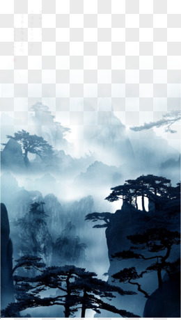 手绘中国风水彩水墨渔船钓鱼老人素材