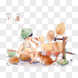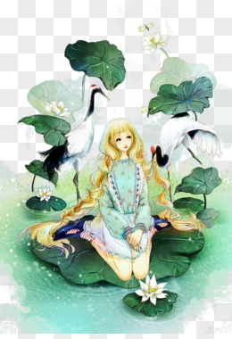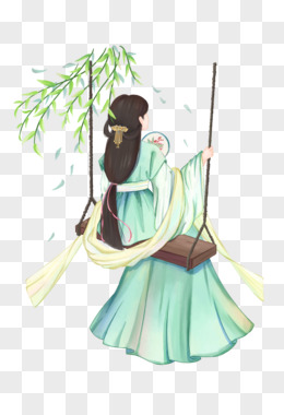 卡通可爱古风吹葫芦丝的古代小女孩元素