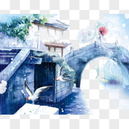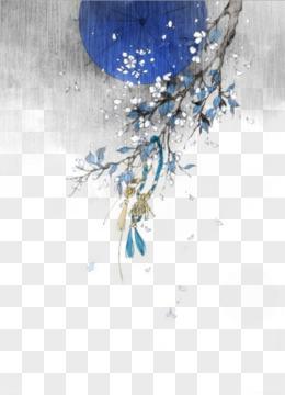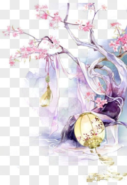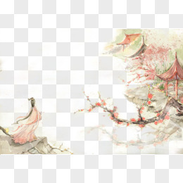 手绘水彩柳树发芽牧童牧牛场景免抠元素