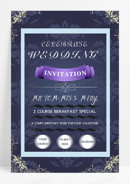 时尚的紫色喜庆精致的婚礼海报