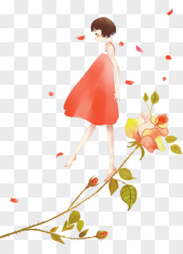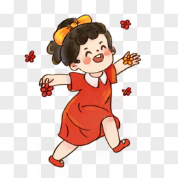 治愈系水彩可爱小女孩蹦蹦跳跳真开心元素