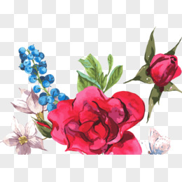 手绘红蓝色晕染花朵花卉简笔画元素
