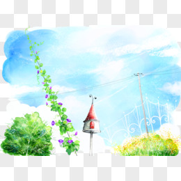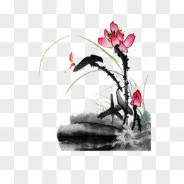 水彩画风七夕红色鹊桥和荷花免抠元素