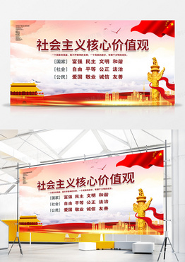 水彩渐变社会主义核心价值观党建宣传展板