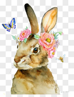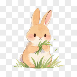 卡通水彩动漫风吃草食草动物兔子免抠元素