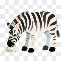 卡通水彩动漫风吃草食草动物斑马免抠元素