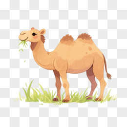 卡通水彩动漫风吃草食草动物骆驼免抠元素