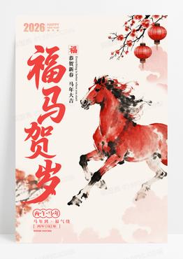 灰色水彩水墨新年2026福马贺岁马年宣传海报马年海报马年