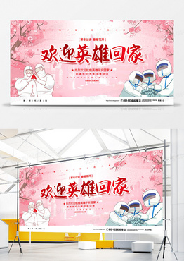粉色水彩抗击疫情欢迎英雄回家宣传展板设计