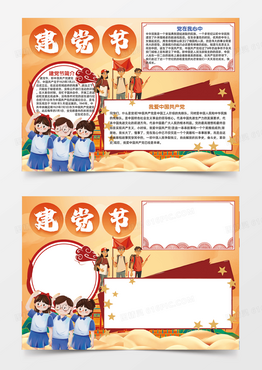 建党节七一人物104周年插画渐变边框红色主题手抄报