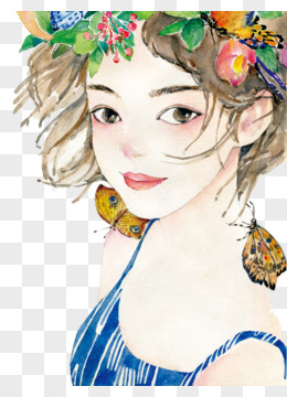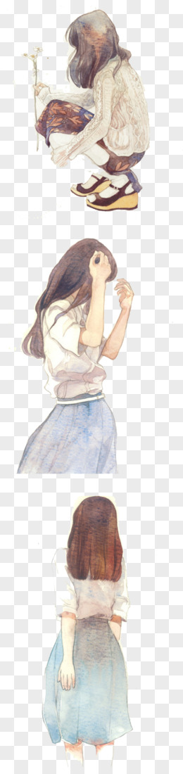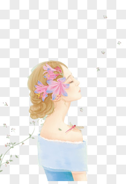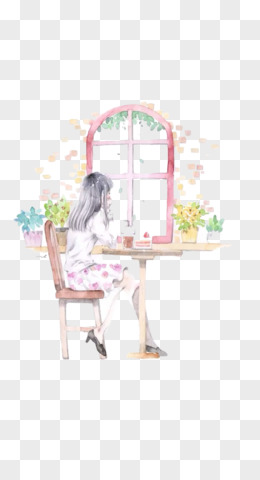 手绘水彩插画风红楼梦之林黛玉和贾宝玉一起看书元素