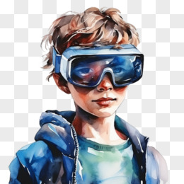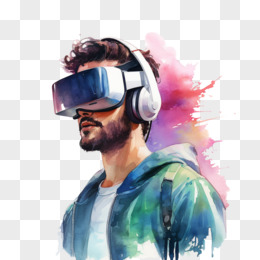 水彩插画VR眼镜虚拟世界免抠元素