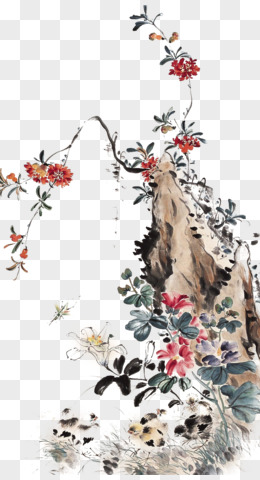 水墨水彩笔触山水画风格植物柿子边框免扣元素