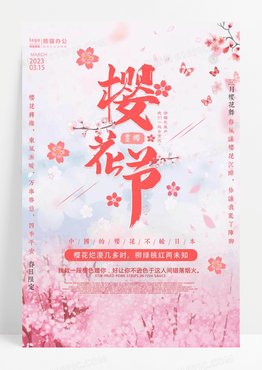 粉色创意水彩樱花季浪漫樱花季海报春天春季樱花