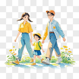 水彩手绘风格骑单车上学的可爱女孩免抠元素