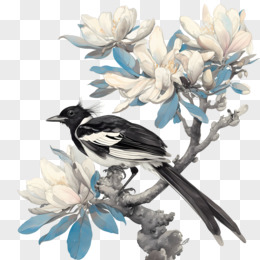 水墨水粉水彩黑白水墨风免抠元素玫瑰