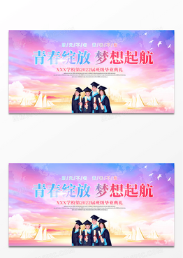 炫彩简约水彩青春绽放梦想起航毕业典礼展板